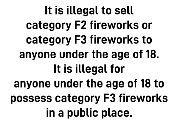N.B. MUST print in full colour and A3 size with the legally required sized letters; The Fireworks Regulations Act 2004 require a notice to be displayed in a prominent position in premises selling fireworks and it must be no less than 400mm by 300mm, with letters no less than 16mm high